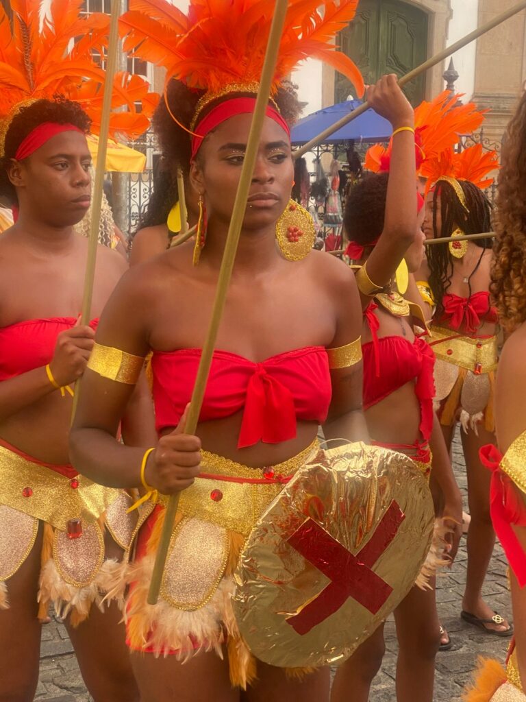 O tema “AOSHI – Guerreiras de Daomé” é particularmente potente. Trazer a história das Ahosi (as famosas Amazonas de Daomé) para as ruas do Centro Histórico não é apenas estética; é um resgate histórico profundo sobre a força militar e política das mulheres negras.